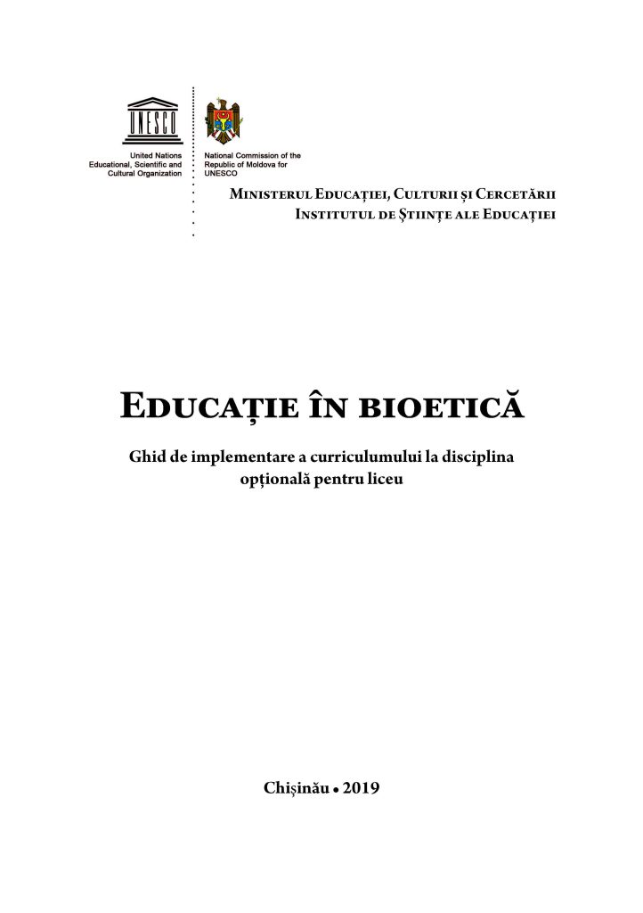 Lucrarea este editată cu suportul financiar al Comisiei Naţionale a Republicii Moldova pentru UNESCO în cadrul Programelor de Participare UNESCO şi al Proiectului „Bioetică prin Educaţie”.