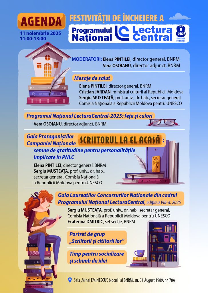 Ministerul Culturii al Republicii Moldova, Comisia Națională a Republicii Moldova pentru UNESCO și Biblioteca Națională a Republicii Moldova organizează Festivitatea de încheiere a Programului Național „LecturaCentral – ediția a VIII-a, 2025”.